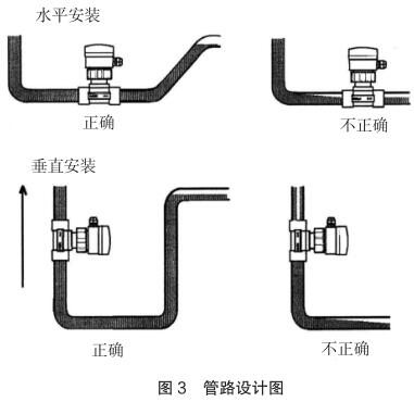 請(qǐng)確認(rèn)管路設(shè)計(jì)不允許在介質(zhì)中產(chǎn)生氣泡或空腔,否則將引起測(cè)量誤差。