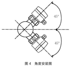 垂直安裝時(shí)確保流向由下而上,如圖 4 中箭頭所示,應(yīng)與管道水平中心線成 45 度角安裝高壓電磁流量計(jì)。